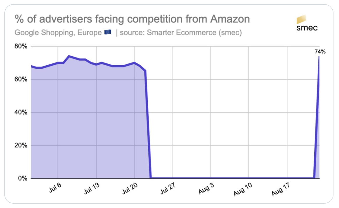 A finales de julio, Amazon se retiró por completo de Google Shopping. Un gesto sin precedentes. Sin comunicado. Sin justificación. En 48 horas, su cuota de impresión pasó de más del 50 % en mercados como EE.UU. o Reino Unido… a cero. Una retirada brutal que dejó al ecosistema publicitario e-commerce en estado de shock.